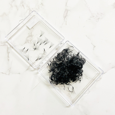 Pre-Made Matte Black Loose Base Fan Lashes Tray 500 Fans Handmade Fans Eyelash Extension